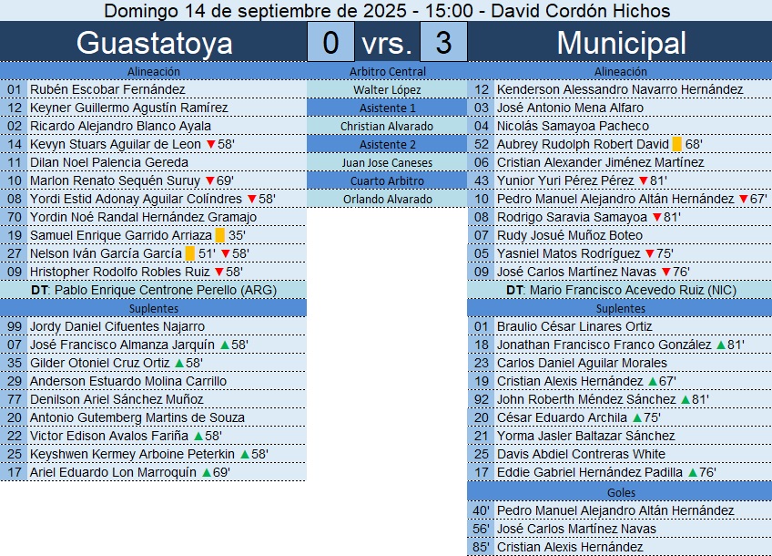 Liga Nacional – Jornada 9 – Guastatoya 0-3 Municipal – 14/09/2025