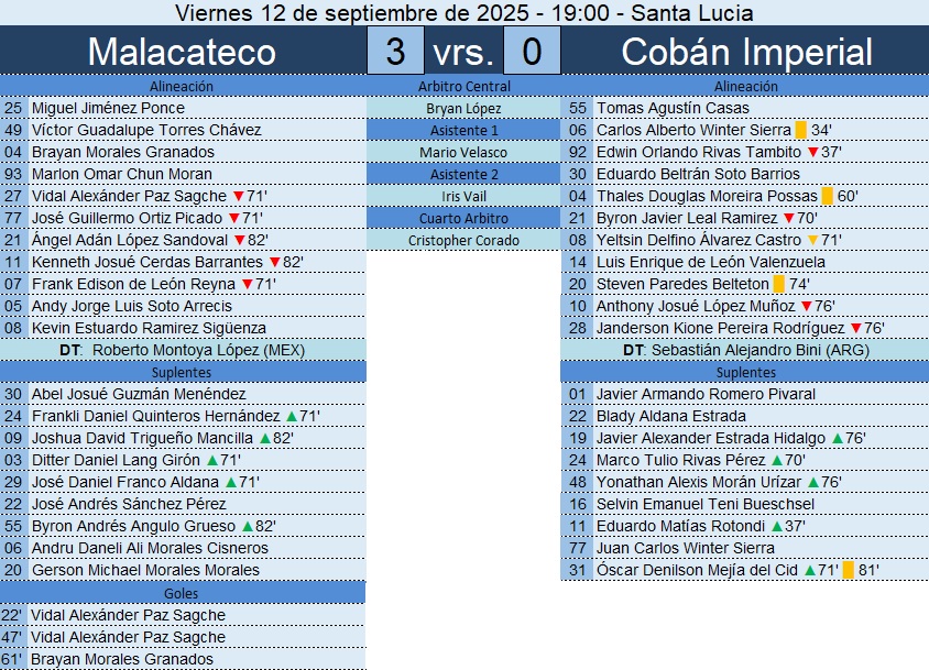 Liga Nacional – Jornada 9 – Malacateco 3-0 Cobán Imperial – 12/09/2025