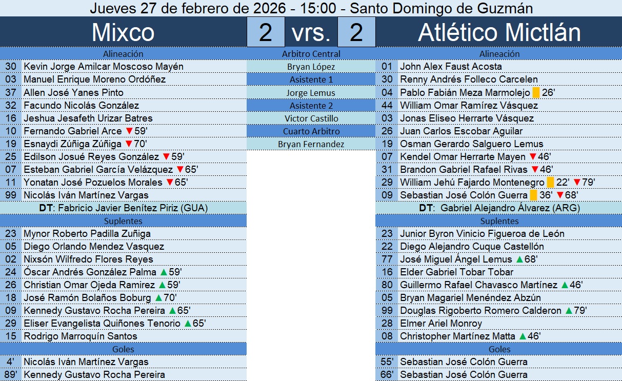 Liga Nacional – Jornada 9 – Mixco 2-2 Atlético Mictlán – 26/02/2026