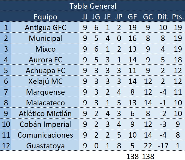 Estadísticas del encuentro entre Guastatoya vs Mixco.