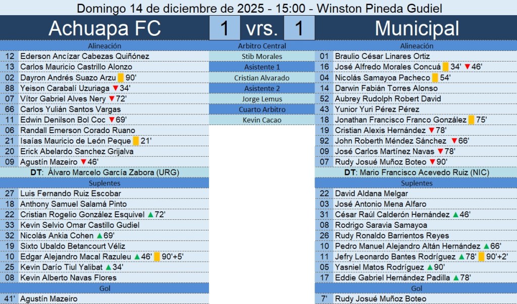 Liga Nacional – Semifinal de Ida – Achuapa FC 1-1 Municipal – 14/12/2025