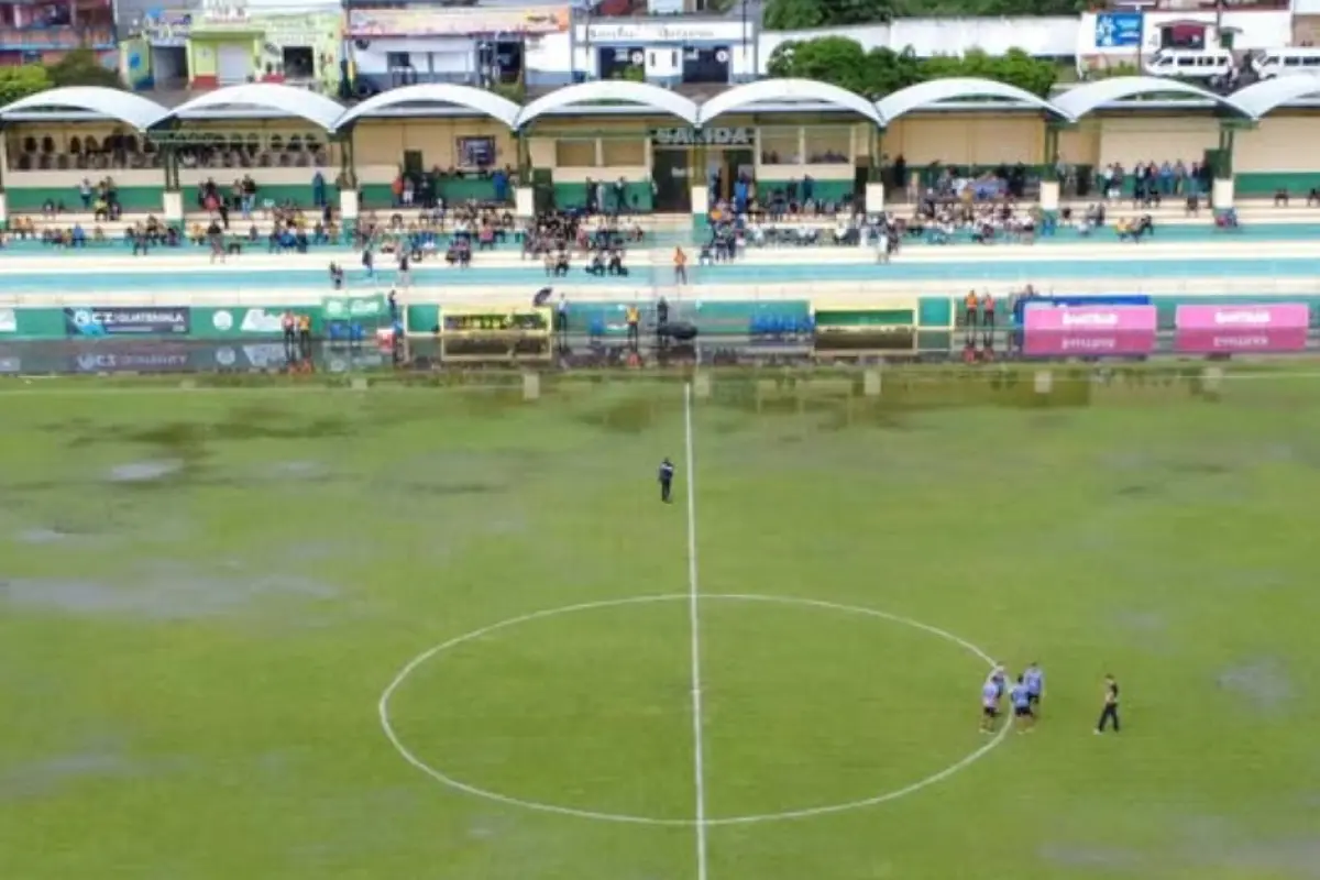 El partido entre Aurora y Mictlán, programado para este jueves a las 14:00 horas en el estadio Guillermo Slowing de Amatitlán, fue suspendido debido a las fuertes lluvias que dejaron la cancha anegada e impracticable.
