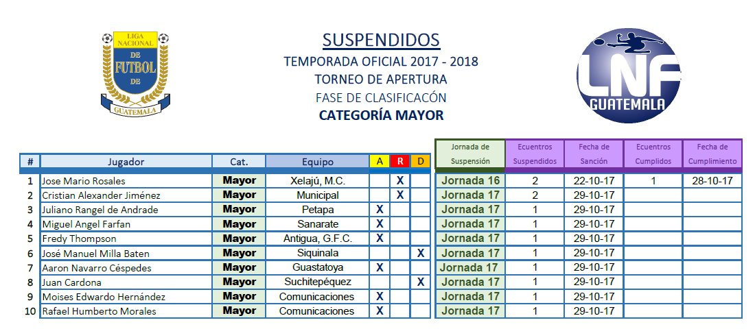 El Órgano Disciplinario de la Liga Nacional, dio a conocer quienes serán los ausentes de la jornada 18 del Torneo Apertura.