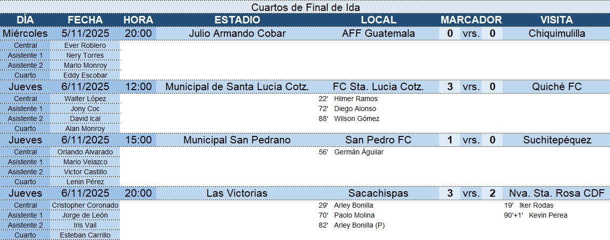 Primera División – Cuartos de Final de Ida – 06/11/2025