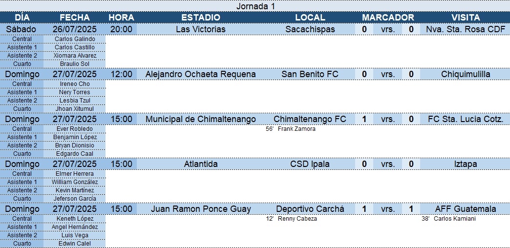 Primera División – Jornada 1 – 27/07/2025