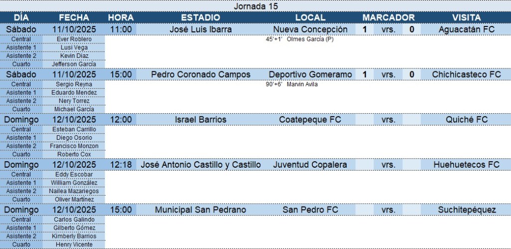 Primera División – Jornada 15 – 11/10/2025
