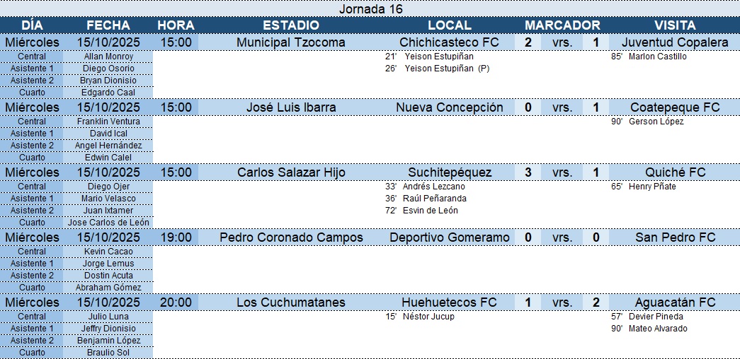 Primera División – Jornada 16 – 15/10/2025
