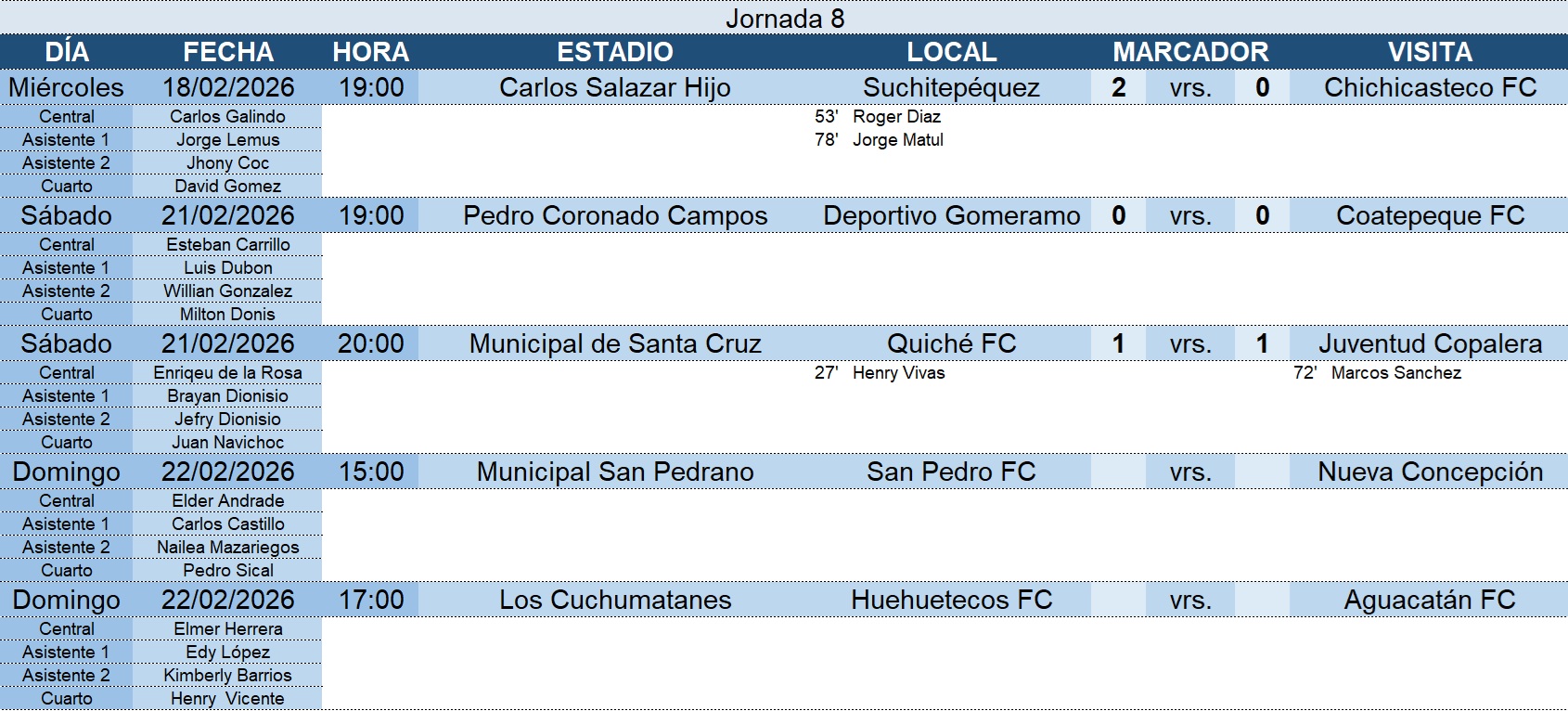 Liga Nacional – Jornada 8 – Guastatoya 2-0 Cobán Imperial – 21/02/2026