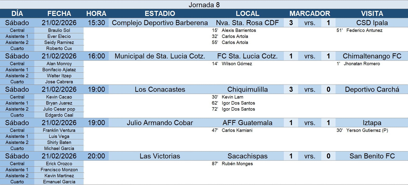 Primera División – Jornada 8 – 22/02/2026