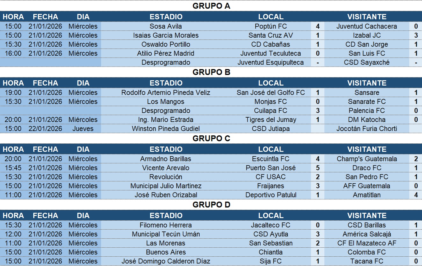 Liga Nacional – Jornada 1 – Guastatoya 2-0 Mixco – 22/01/2026