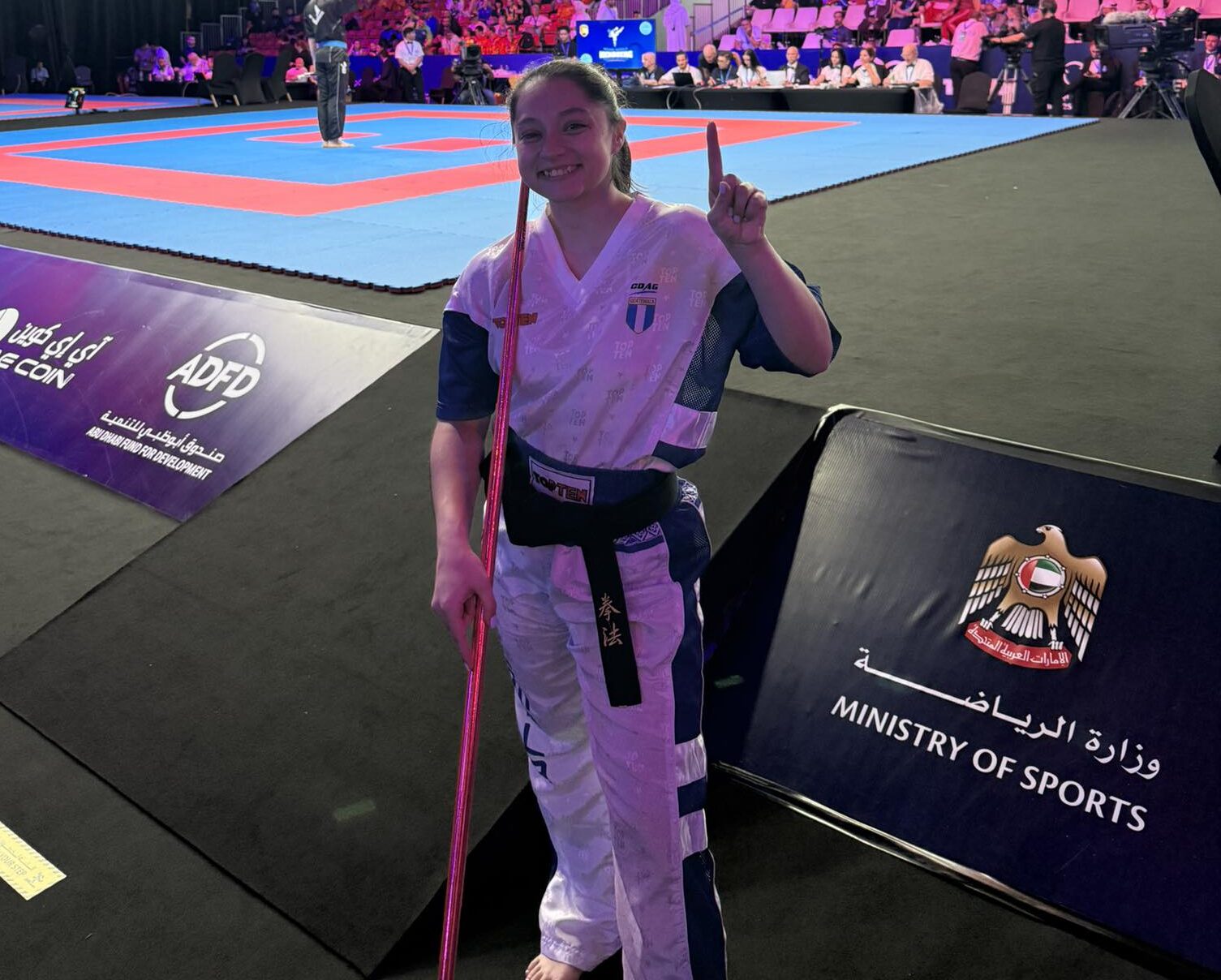 El Abu Dhabi National Exhibition Centre fue el escenario en donde la representante de Guatemala subió a lo más alto del podio de la categoría armas musicales al ejecutar una rutina valedora de la medalla de oro por parte de los jurados.