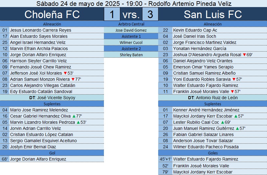 Tercera División – Semifinal de Ida – Choleña FC 1-3 San Luis FC – 24/05/2025