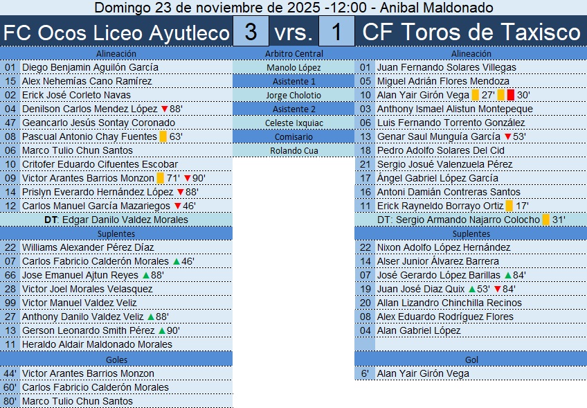 Tercera División – Semifinal de Vuelta – CF Toros de Taxisco 3-0 FC Ocos Liceo Ayutleco – 30/11/2025